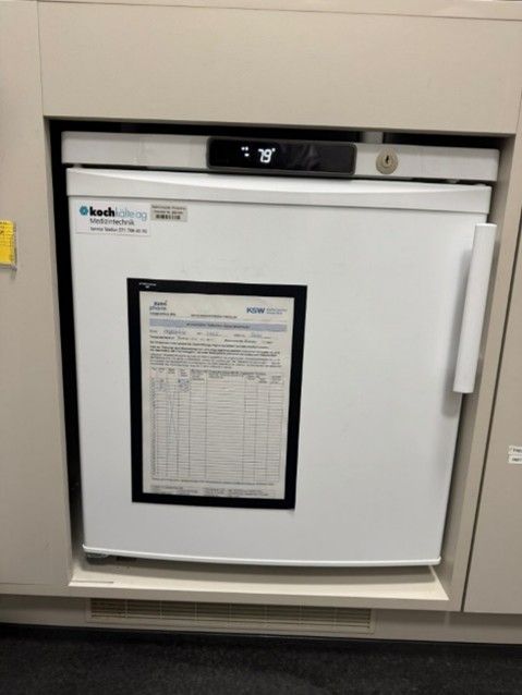 - Steriles Rundbodenröhrchen mit Hank’s Lösung. Lagerung im Gebärsaal im Gefrierfach des Kühlschrankes in der Apotheke