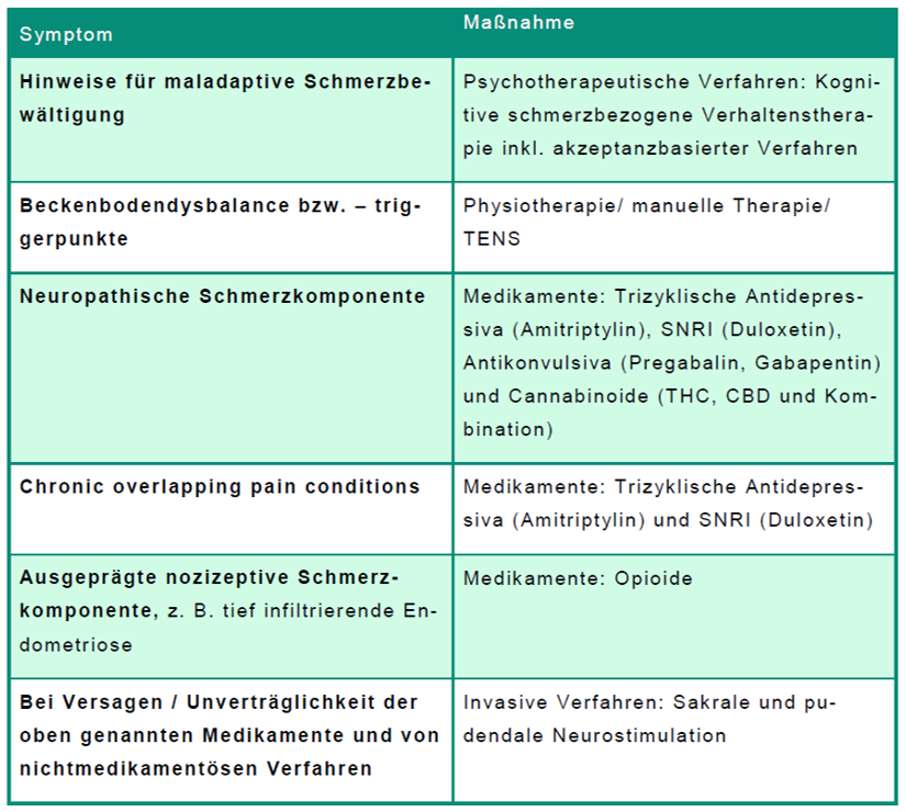 Erster Schritt der Rezidivtherapie ist die Vermeidung des Rezidivs und damit in erster Linie die Vermeidung des Endometriose-assoziierten Beschwerdebilds (Schmerzen)