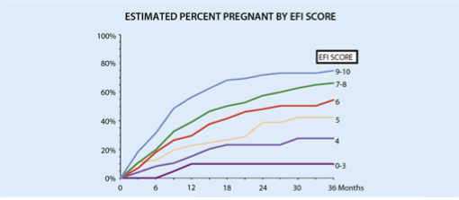 - Je nach errechnetem EFI-Score kann anhand der Normkurve die geschätzte Schwangerschaftwahrscheinlichkeit abgelesen werden.