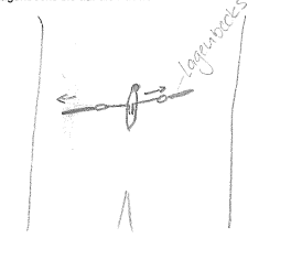 1. Hautschnitt vom Bauchnabel gerade nach unten 2cm