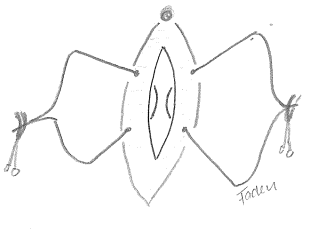 5. Vorlegen 0 Vicryl UR-6 Faden pro Seite (von aussen nach innen und innen nach aussen)
