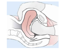 Kompression der kompletten Uterusvorderwand an die Rückwand vom Fundus bis zur Zervix