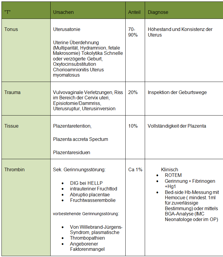 B. Parallel dazu: Blutungsursache feststellen 4 "T"