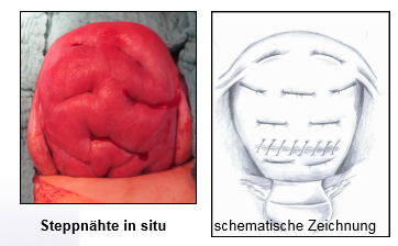 3.Pereira Naht : Atonie und Implantationsstörung Mehrfache zirkuläre und longitudinale Nähte ohne Cavumbeteiligung. ( Abbildung 6)