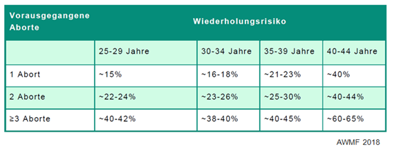 Die ASRM definiert die wiederholten Spontanaborte bereits durch das Vorkommen von 2 konsekutiven Aborten.