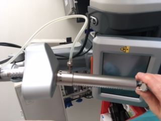 Anschluss der Mona Lisa Touch 360° Vaginal-Sonde und Anbringen des Rauchabflussschlauches an das Handstück