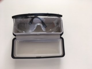 Aufsetzen einer Laserschutzbrille - alle im Zimmer anwesenden Personen!